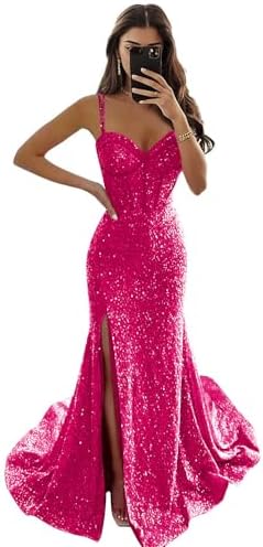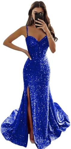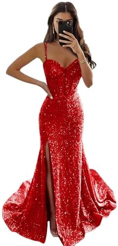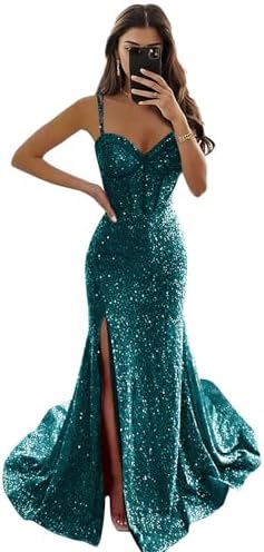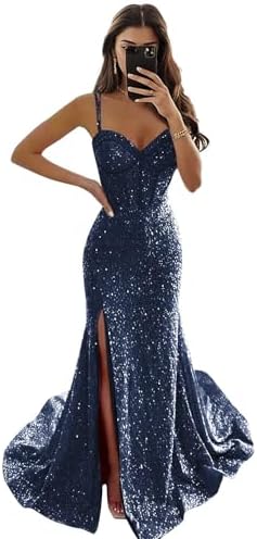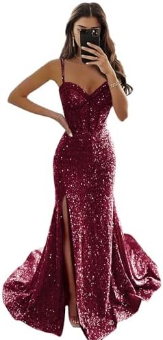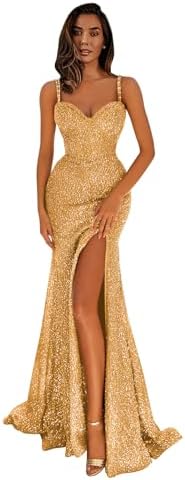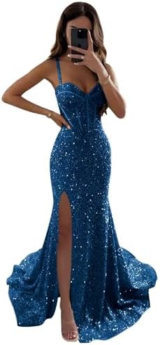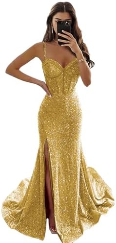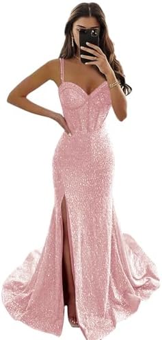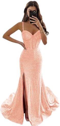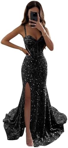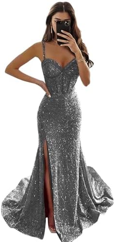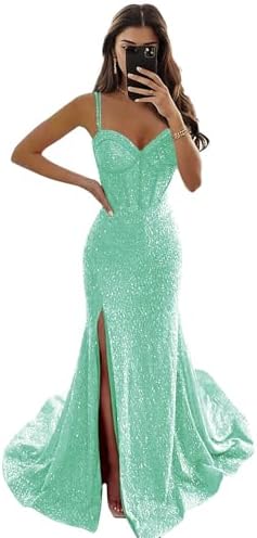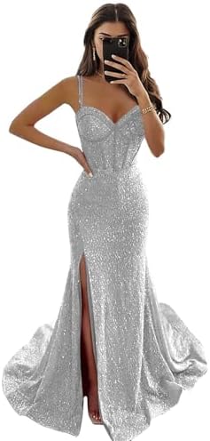 BOLENSYE Sparkly Sequin Mermaid Prom Dress with Slit for Women – Elegant Evening Corset Gown – OEKO-TEX STANDARD 100 Cer